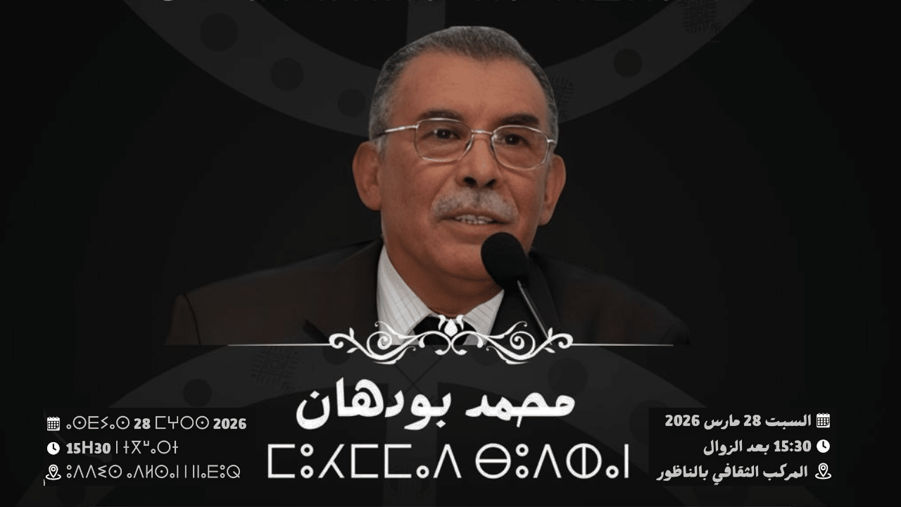 The program features testimonies, intellectual readings, and artistic performances, highlighting Boudhan’s principles, his work for democracy, and his impact on Amazigh identity. Under the theme “Mohamed Boudhan: Thought Never Dies, Amazigh Identity Never Fades”, the memorial celebrates his legacy and encourages reflection on the values he championed throughout his life.